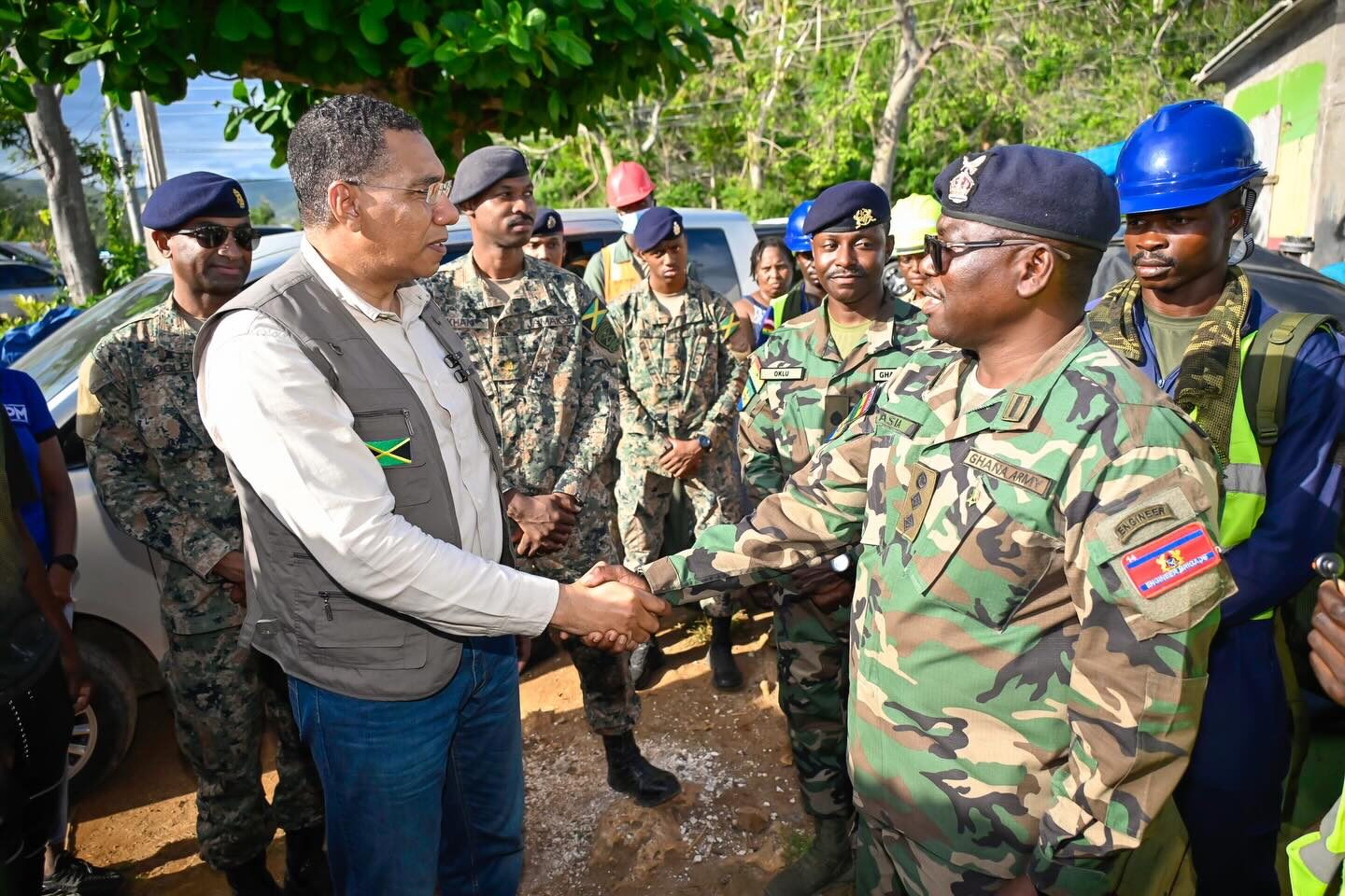 The Prime Minister was joined on the tour by senior military officials, including Brigadier O’Neil Bogle, Brigade Commander of the Support Brigade, and Major Daniel Khan, Commander of the Engineer Task Force, along with other members of the JDF. He commended all personnel involved for their dedication to restoring damaged communities and building national resilience against future disasters.